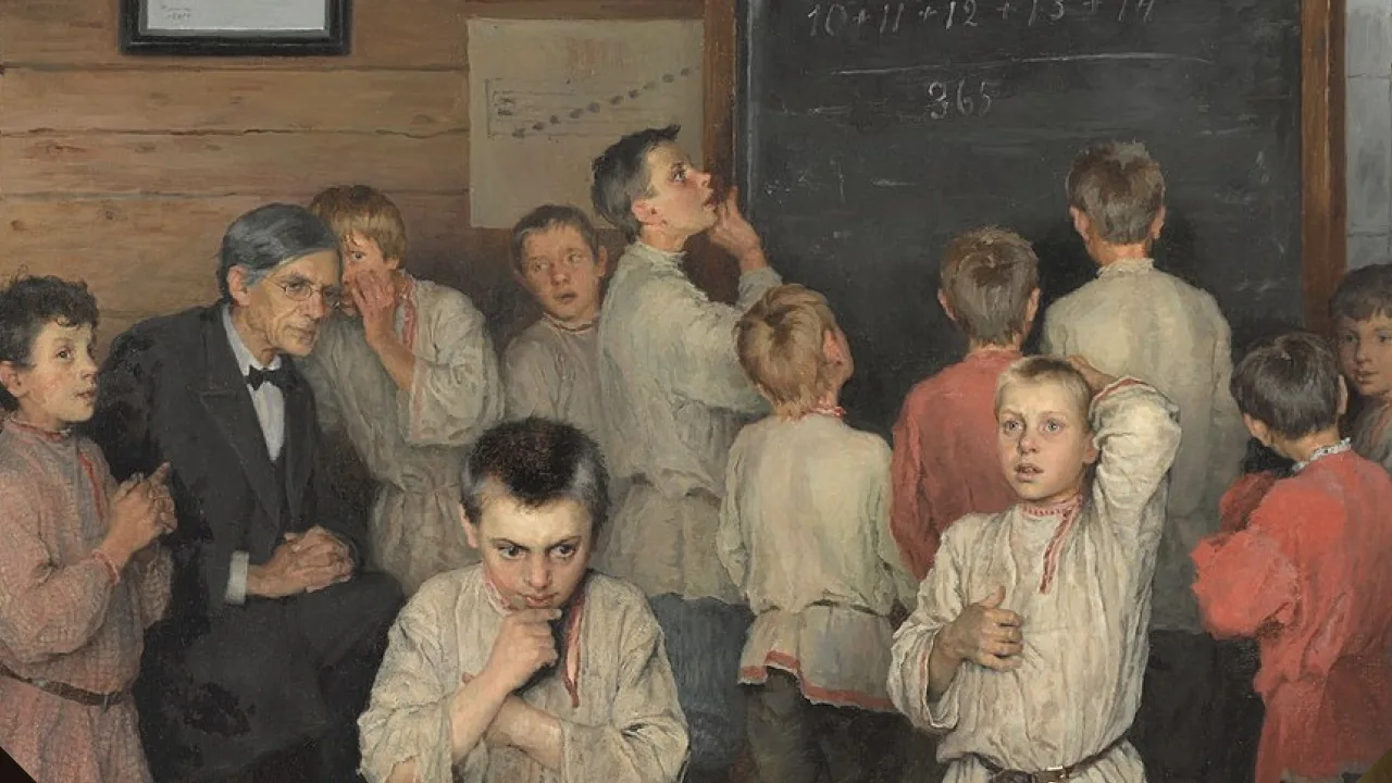 O texto diferencia saber de memorizar em matemática. Usando Sócrates, mostra que o aprendizado real só começa com a consciência da própria ignorância.